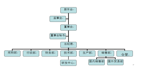 公司根據(jù)業(yè)務(wù)流程,設(shè)計和建立了組織架構(gòu),目前設(shè)立了8個職能部門,部門除了各負其責外,部門之間還相互協(xié)調(diào)合作,確保管理責任的落實。
